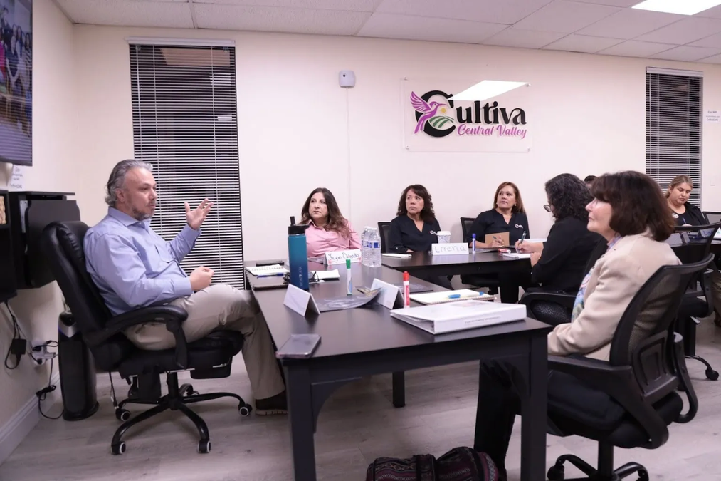 Sanchez met with about 12 community leaders at the offices of Cultiva Central Valley on M Street.
