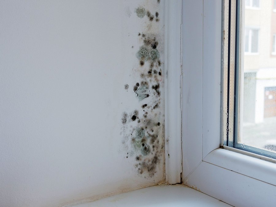 - Discoloration on walls, ceilings, or window sills—especially green, black, or white patches